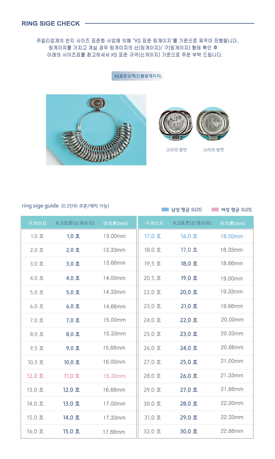 정확한 사이즈를 위해 링게이지 사용을 추천드리며