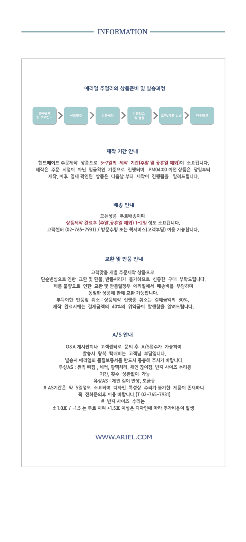 제품 발송 시 에리얼 정품 품질 보증서를 발급해 드리며